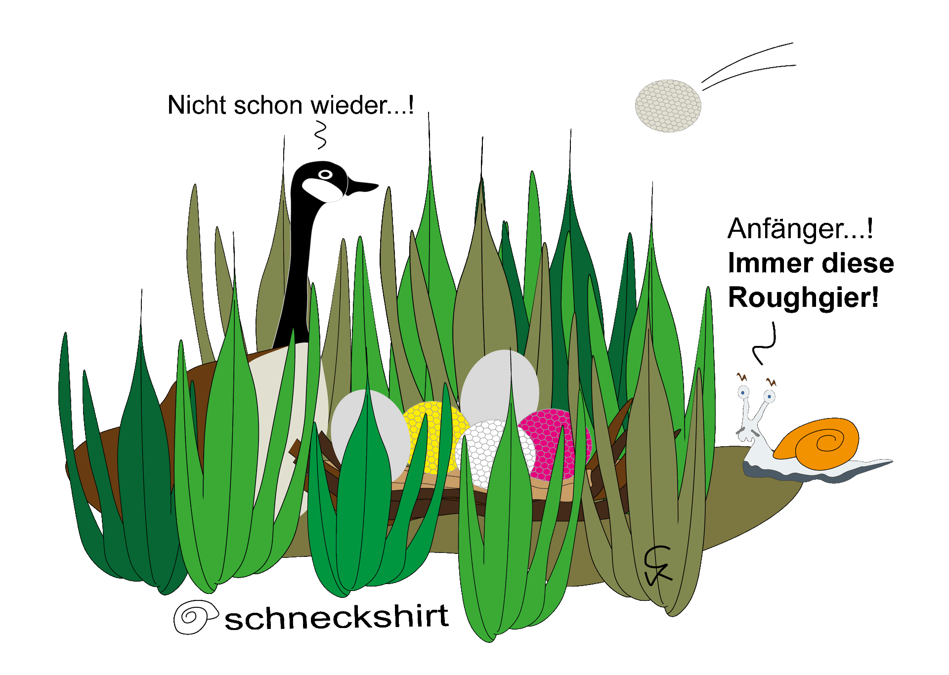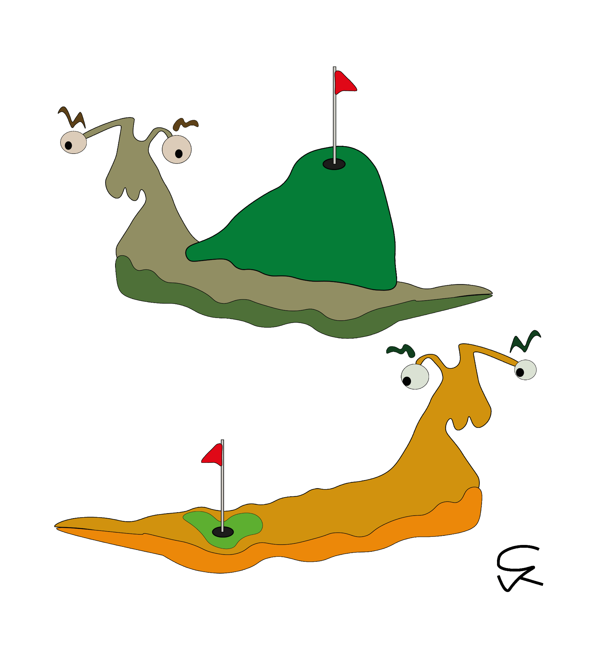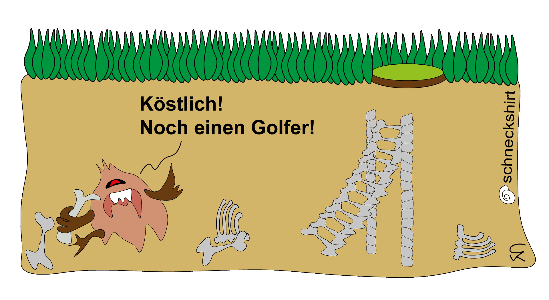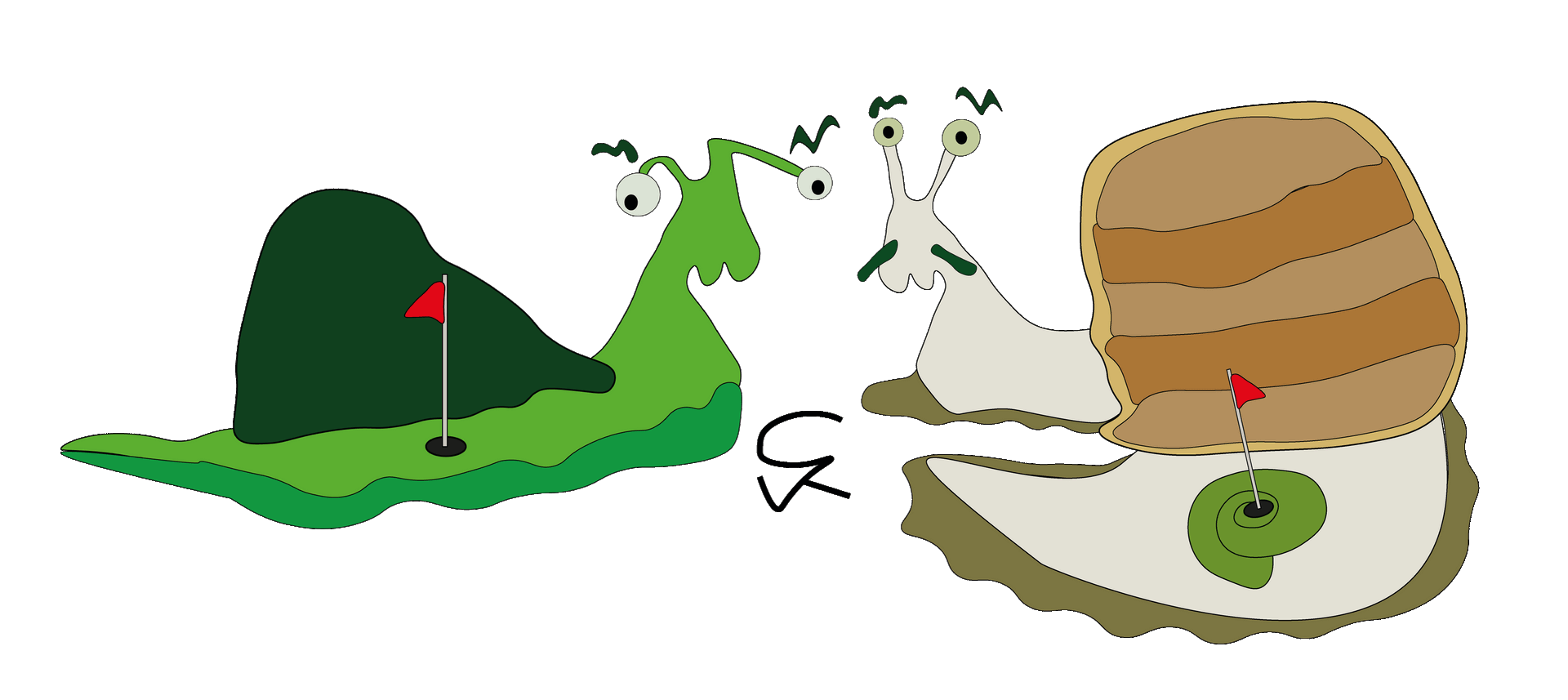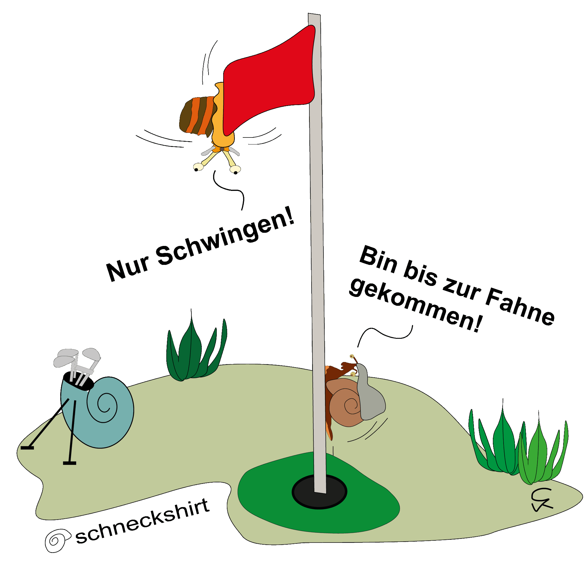 Beim Golf-Lernen sind mir die nachfolgenden Cartoons in den Sinn gekommen. Im Dezember 2023 habe ich die dazupassenden Cartoon-Schnecken erfunden, die sich die "Rookie-Schnecken" nennen, oder auch die "Mützenschnecken". Seit kurzem nutze ich das von mir entworfene, unten gezeigte Logo mit den Namen "schneckshirt", als aktuell noch privat genutztes Erkennungsmerkmal.